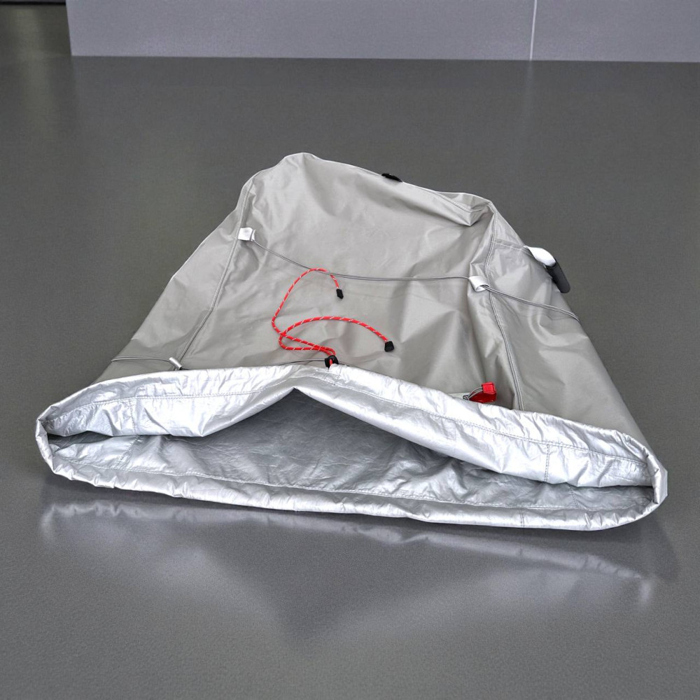 The inner fabric features a multi-layer structure with a cotton base for insulation and a silvered surface that acts as a heat barrier, reducing dew and smoothing out temperature changes.