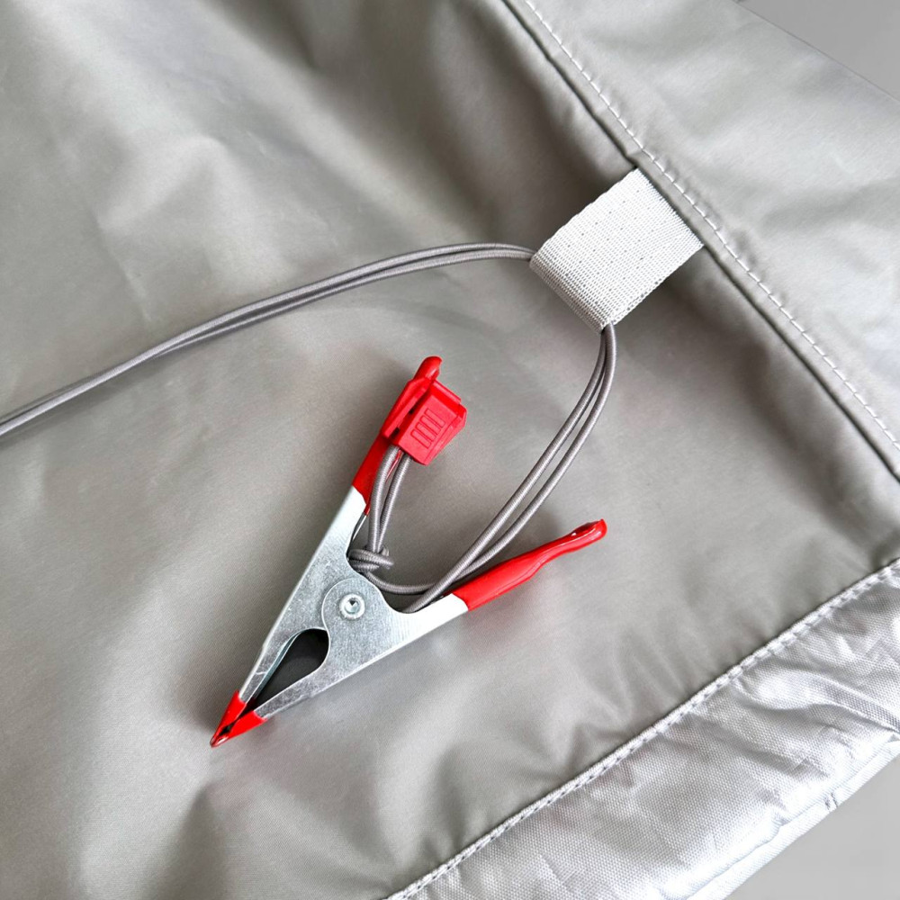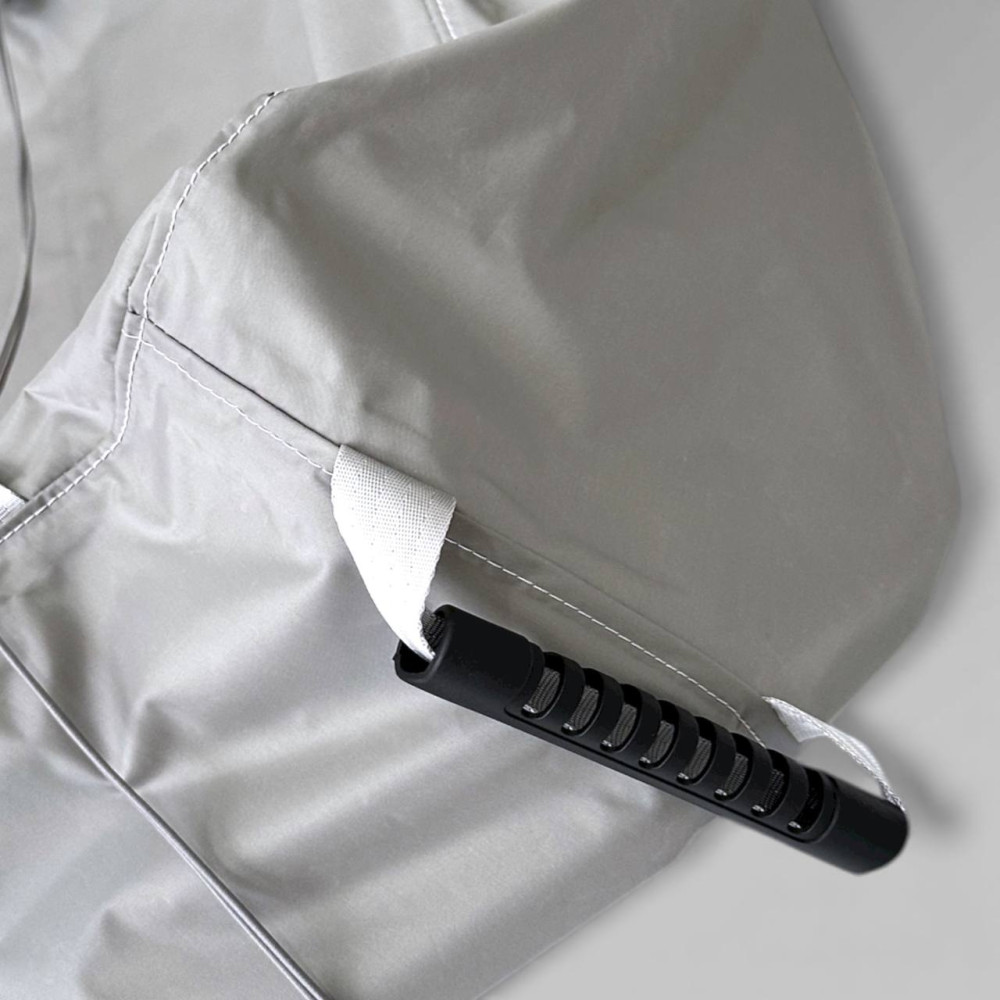 Removable desiccant pocket with reusable silica gel — maintains lower humidity inside the cover. The silica gel includes a color indicator showing when it’s time to remove and dry it.